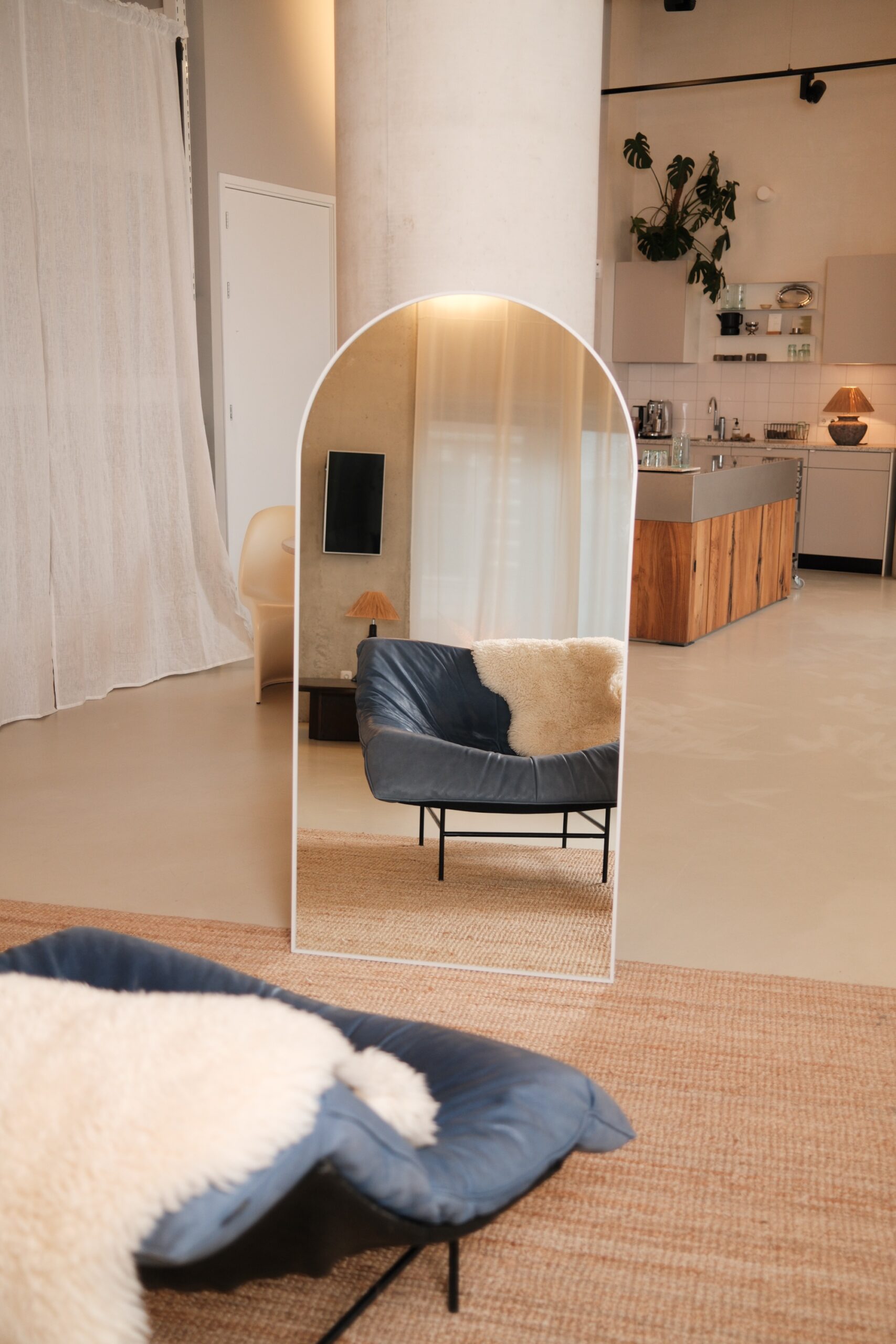 Met zijn elegante boogvorm en formaat van 160 × 80 cm is dit de ideale full-length spiegel voor kleinere ruimtes zoals de hal, slaapkamer of dressing.